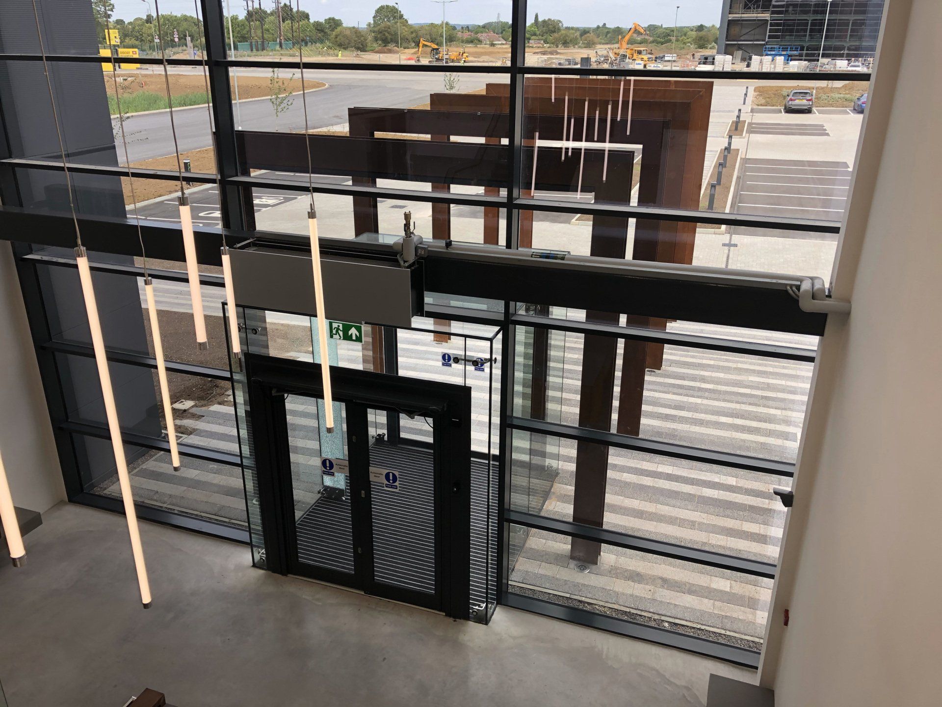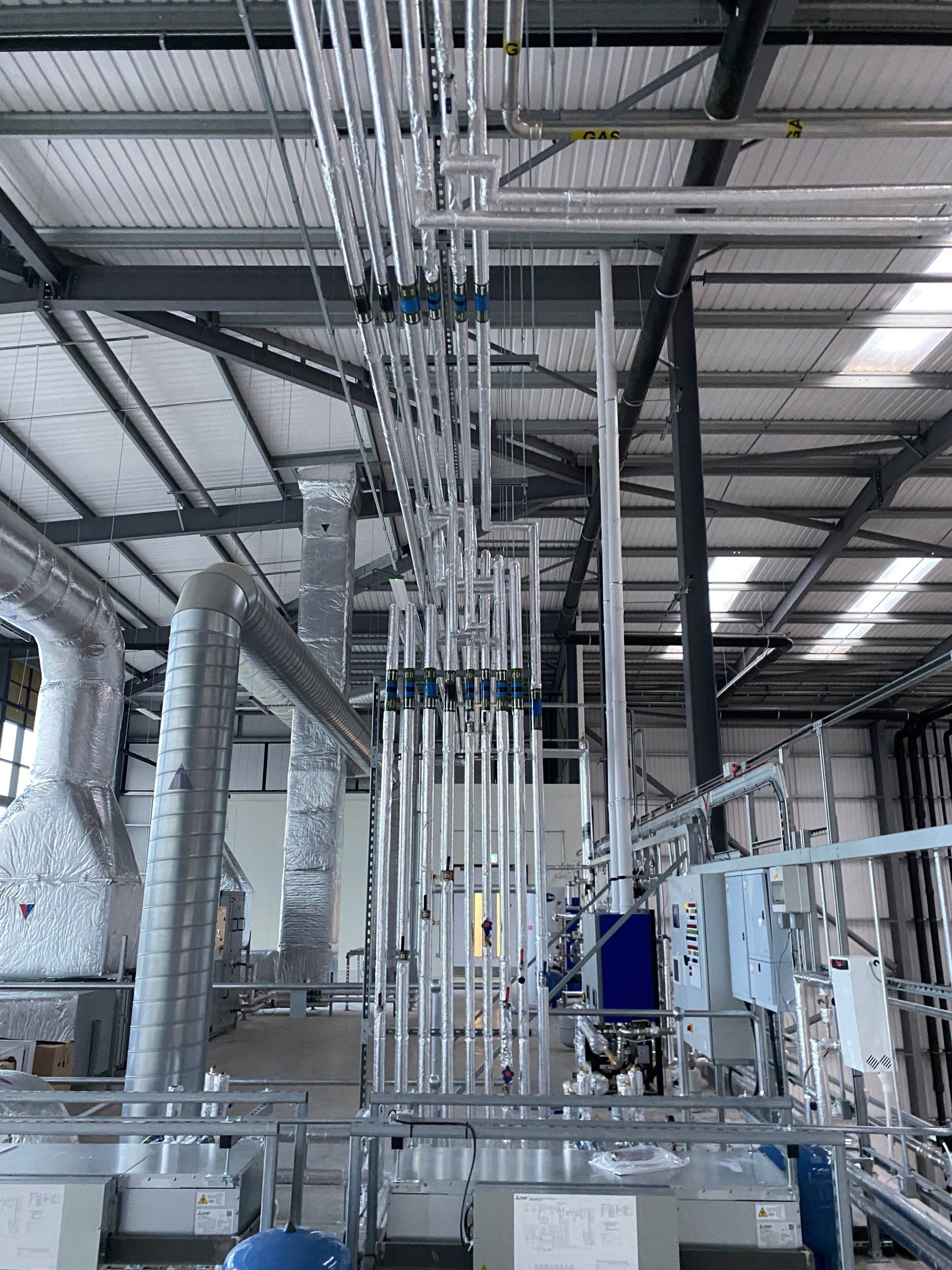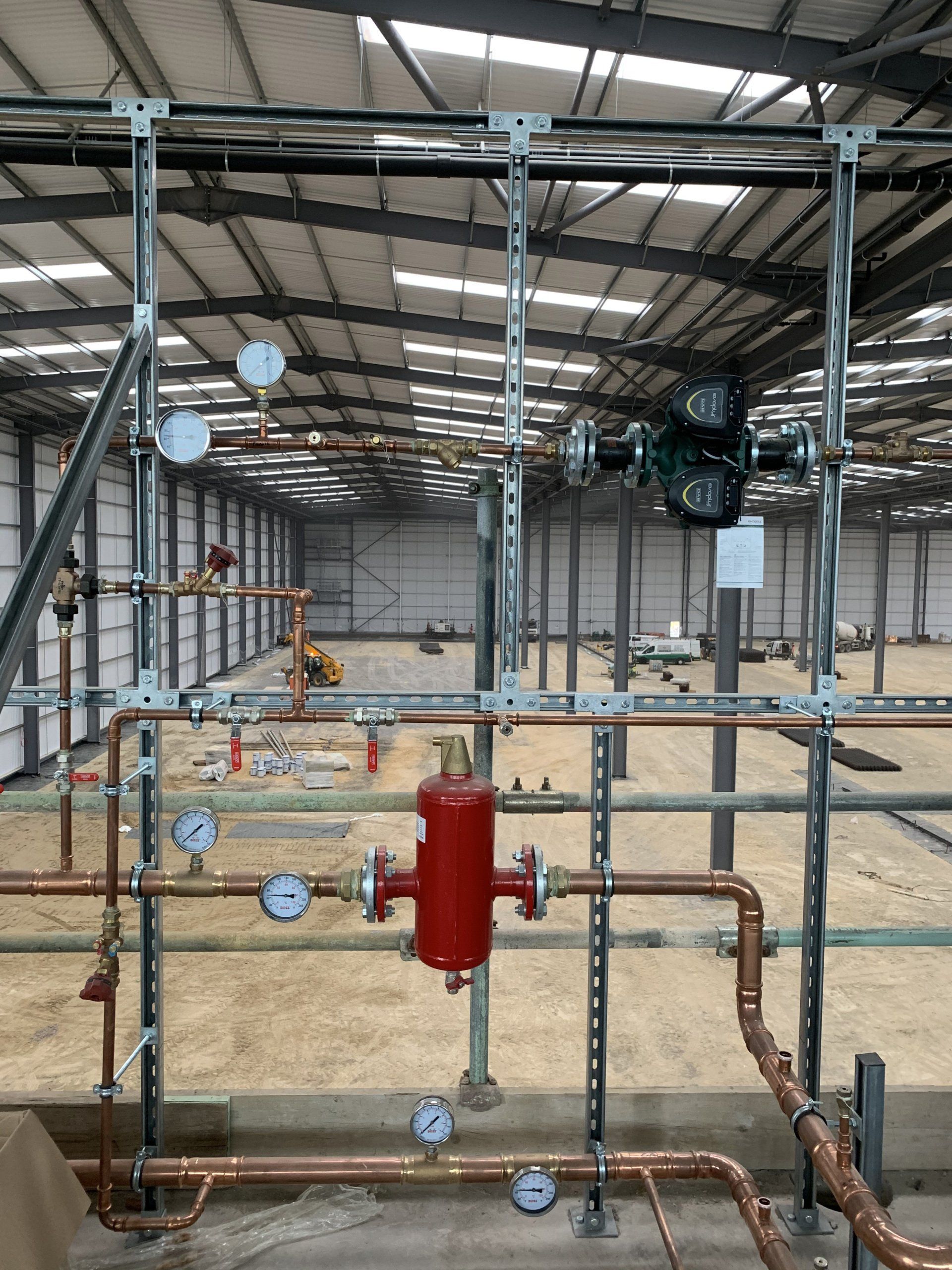 The project consisted of two new warehouses with office spaces fitted out to CAT A standard achieving BREEAM Excellent status. Services included 1.5MVA incoming HV, mains electrical distribution, internal and external lighting including digital lighting systems, fire alarm, disabled alarm, car charging points and lightning protection. External fire hydrant ring mains, external and internal gas supplies, gas fired LPHW heating system, hybrid VRF comfort cooling and heating, rainwater harvesting system serving WCs and external irrigation points, sanitary ware and above ground drainage. Domestic hot and cold water including solar thermal systems. Mechanical ventilation via central air handling units and twin extract fans. Trend BMS controls systems.